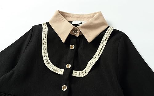 Charming Preppy Style:Designed with a timeless school-ready look, the girls fall uniform dress features a contrast button-up shirt collar, A-line shape, and cotton floral trim along the bodice and cuffs. It blends neat tailoring with sweet detail, making it nice for girls who love a polished and put-together look