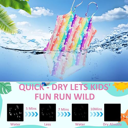 【Durable & Easy to Maintain】Built for durability, these girls bathing suits resists fading and stretching, even after multiple washes. Machine washable for hassle-free care, it’s the perfect choice for busy parents who want quality and convenience. The quick-dry technology keeps your child comfortable from pool to picnic.These aren’t just swimsuits for girls; the swimming suit for girls are canvases for self-expression and childhood magic.