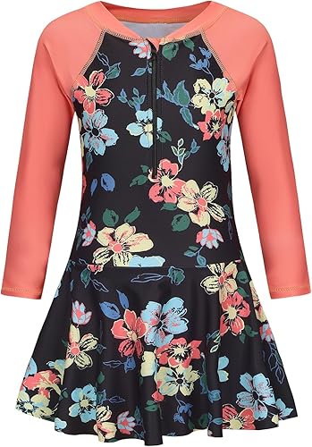 ◎---Brilliant girls one piece swim dress features the trendy digital prints and stylish hawaiian design, which offers a fabulous and lovely look to your sweeties. Also, these girls rash guard swimsuits should be a perfect gift idea for your girls.