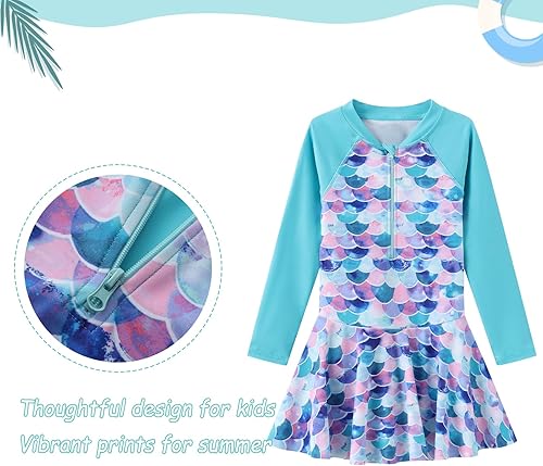 ◎---With lightweight and UPF 50+ rated chemical free fabrics, our girls long sleeve swimsuits would protect your children’s delicate skin against 95% of harmful UVB and UVA rays all day long for a comfortable wear.
