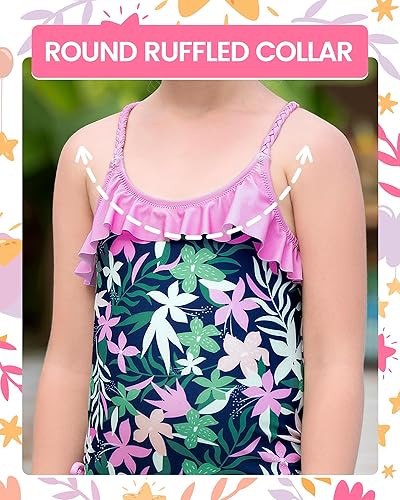 PERFECT FIT: Our girls' one piece swimsuits come in 7 sizes, suitable for kids sizes from sizes 2t girls swimsuist, 3t girls swimsuits, 4t girls swimsuits,5 girls swimsuit, 6 girls swimsuits, 7 girls swimsuits, 8 girls swimsuits. Age is for reference only, and you can choose the size according to your child's actual body type. It will be perfect for your child.