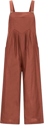Girls Overalls Kids Loose Casual Sleeveless Jumpsuits Harem Pants One Piece Rompers with Pocket (Brown #2, 13-14 Years)