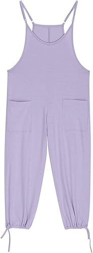 【Features】Cropped length,long pants,sleeveless v neck,spaghetti strap,high waist, two pockets. It is lightweight,comfortable, versatile and can be dressed up or down easily. Girls can wear it anywhere because it can be easily pulled up and down to use the restroom. Suitable for spring, summer and autumn.