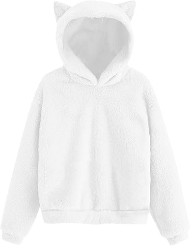 Girls Oversized Hoodies with Cat Ears Cute Fashion Sweatshirts Fleece Casual Pullover Warm Fall Winter Clothes(#07-white,12-13 Years)