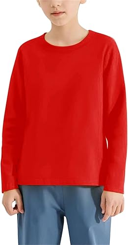 Girls Oversized Sweatshirts Long Sleeve Crewneck Cotton Loose Soft Tee Tops Solid Color Athletic Pullover Clothes(Red,18-24 Months)