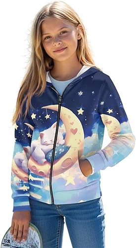 Chic Drop-Shoulder Silhouette:This girl's zipper hoodie boasts a fashionable drop-shoulder design that flatters the shoulder line. Its loose fit allows for unrestricted movement, letting kids play freely without feeling bulky. Ditch uncomfortable clothes and embrace a relaxed, stylish look