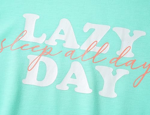 Feature: Mint green top is designed with fun text of LAZY DAY sleep all day. The matching stripe bottoms are with Pull-on elasticized waistband.
