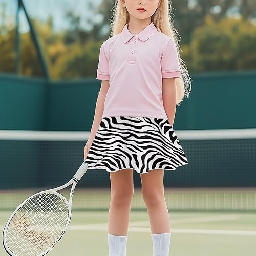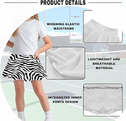 Girls Pleated Skorts Tennis Skirt Girls Pleated Skirts Athletic Skorts Sport Skirt with Pockets(Zebra-stripe,7-8 Years)