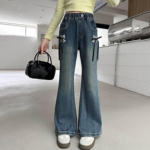 Material Comfortable Fit:Crafted from denim, these jeans for girls ensure comfort and durability. The wide-leg, baggy design offers ample room for movement, making them for active kids. High-waisted with an elastic waistband