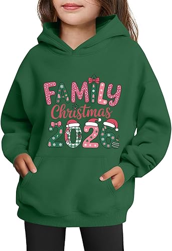 Girls Pullover Hoodie Sweatshirt With Graphic Print Hood Long Sleeves Pocket Casual Fit Soft Girls Fashion (2-Green,13-14 Years)
