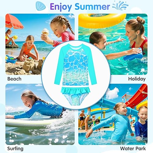 UPF 50+ Protection: The long sleeve design of the girls' swimsuit effectively blocks UV damage and fully protects the delicate skin of little girls. Built-in sunscreen function, let the baby enjoy the sun and waves without worry.