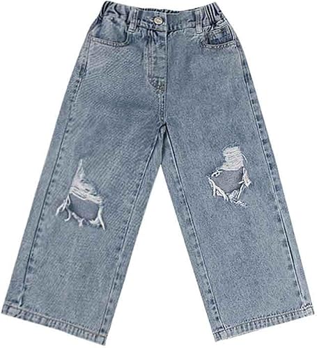 Material: Crafted from a comfortable cotton blend denim with generous stretch, these wide leg jeans offer flexibility and ease of movement. The soft yet durable fabric ensures all-day comfort for active kids, making these pants a wardrobe staple. girls wide leg jeans size 10-12 years.