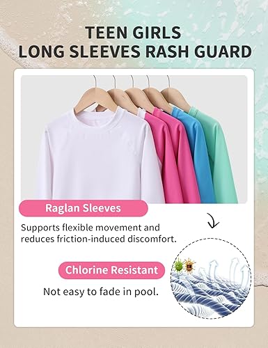 Chlorine-Resistant & Quick-Drying: The girls' rash guard swim shirts maintain their shape and color even in chlorinated water, while quick-drying fabric provides for a perfect day at the beach or in the pool