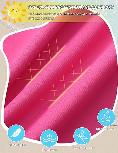 High-Quality Swimwear Fabric: The girls' rash guard features a soft texture and a skin-friendly feel, making it comfortable for all-day wear. Perfect for swimming, bathing, beach, pool, and water park