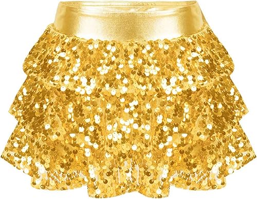 Metallic skirted shorts allow your girls to move freely and enjoy the dance, elastic waistband for a better fit