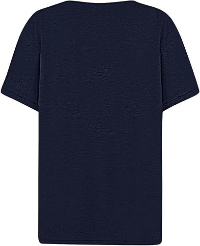 Girls Short Sleeve T-Shirts V Neck Buttons Tops Basic Tee Solid Color Blouse Loose Pullover Spring Summer Shirt 2025(Navy,4-5T)
