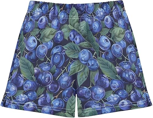 Girls Shorts Summer Blueberry Fruit Blue Athletic Shorts with Stretchy Elastic Waist Beach Shorts XS-XL(Multi,X-Large)