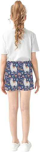 Girls Shorts Summer Cute Llama Animal Flower Athletic Shorts with Stretchy Elastic Waist Beach Shorts XS-XL(Multi,Large)
