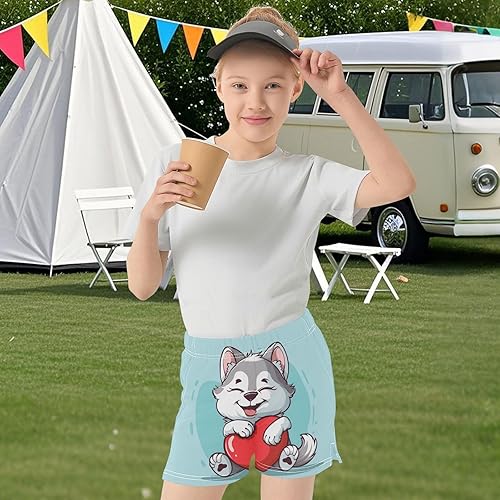 Girls Shorts Summer Husky Dog Heart Athletic Shorts with Stretchy Elastic Waist Beach Shorts XS-XL(Multi,Medium)