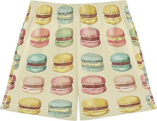 Girls Shorts Summer Macaron Yellow Pattern Athletic Shorts with Stretchy Elastic Waist Beach Shorts XS-XL(Multi,X-Large)