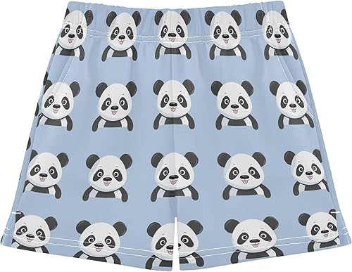 Girls Shorts Summer Panda Cute Animal Blue Athletic Shorts with Stretchy Elastic Waist Beach Shorts XS-XL(Multi,Large)