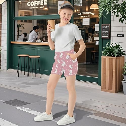 Girls Shorts Summer Rabbit Dot Animal Athletic Shorts with Stretchy Elastic Waist Beach Shorts XS-XL(Multi,X-Small)