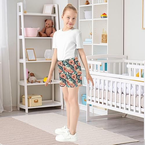 Girls Shorts Summer Red Flower Floral Athletic Shorts with Stretchy Elastic Waist Beach Shorts XS-XL(Multi,Small)