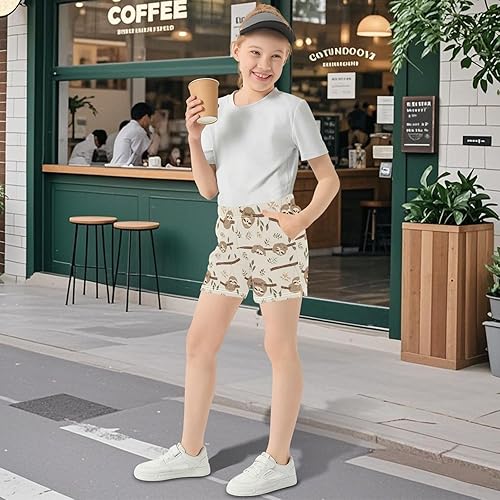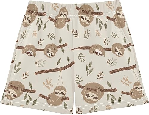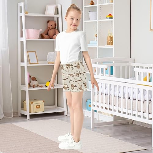 Girls Shorts Summer Sloth Branch Leaf Animal Athletic Shorts with Stretchy Elastic Waist Beach Shorts XS-XL(Multi,Medium)