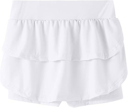 Girls Skirts Built in Shorts Athletic Tennis Skorts Flowy Toddler Girl Casual Fitness Yoga Running (White, 10-11 Years)