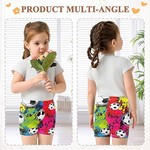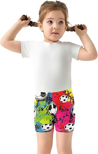Fun soccer ball print makes these girls' shorts ideal for sports, dance, and gymnastics.