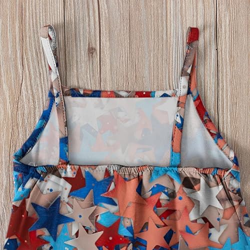 Girls Spaghetti Strap Jumpsuits Toddler American Flag 4th of July Rompers Wide Leg Harem Long Pants Patriotic Overalls(4-blue,12-24 Months)