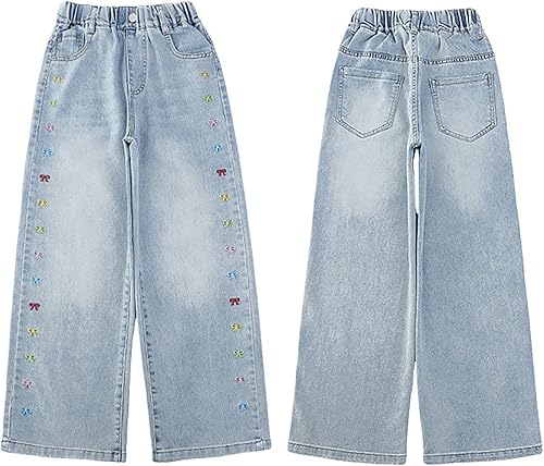 Featuring cute jeans a comfy high waist with an easy on-and-off elastic waistband, loose wide legs, pockets, these baggy kids jeans allowing for all-day comfort and freedom of movement.