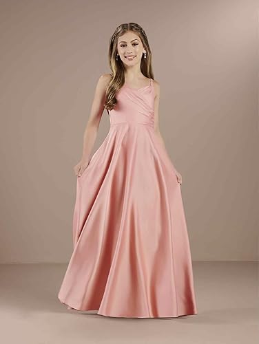 This junior bridesmaid dress for girls is A-Line silhouette with Pleat: The A-Line silhouette of this dress is universally flattering, and the Pleat adds a touch of sophistication. The dress features sleeveless for added coverage and support, making it an excellent choice for any bridesmaid or formal event attend looking to feel confident and beautiful.