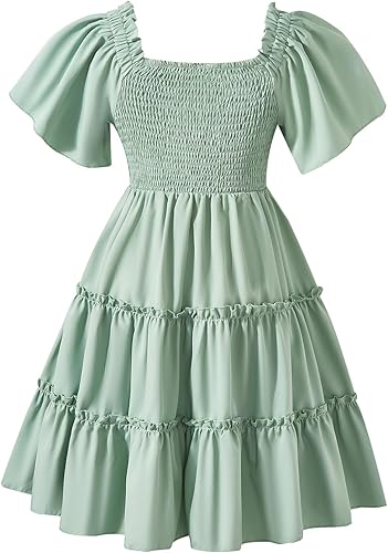 Features: This girls casual dress features a square neck, classic solid color with ruffled and chest smocked design. Flowy swing design with delicate ruffles and a tiered hem for effortless twirls and graceful movement for the most trendy sense.