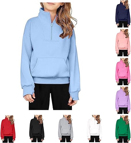 Thoughtful Design Details: Our classic hoodie sweatshirt features a quarter-zip front, cozy hood, thumb holes, and long sleeves with ribbed cuffs for a fit; The pocket keeps little hands warm, while the ribbed hem provides both style and flexibility; The metal zipper glides smoothly for easy wear
