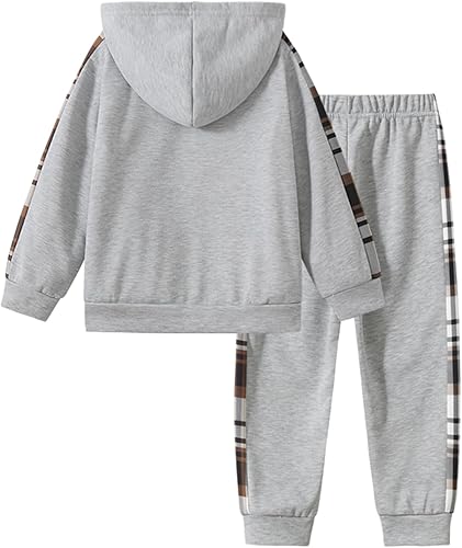 Girls' Sweatsuit 2 Piece Printed Button Down Hooded Sweatshirts and Jogger SweatPants Set 3-12Y(Grey,7-8 Years)