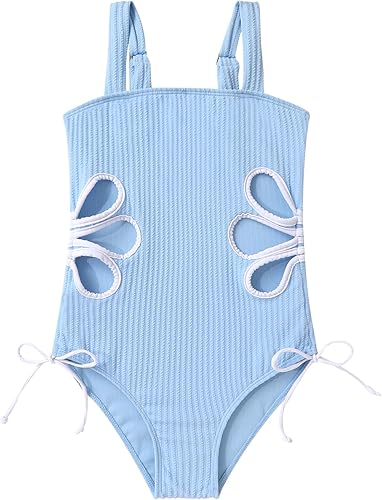 Unique design:One piece bathing suit designed in solid colors , it features the side cut out petal and tight-fitting adjustable waist rope design, matching a cover up skirt, showing an elegant temperament to your kids. In addition, the straps are adjustable, it convenient to adjust a suitable length, while the bras are removable, very easy to clean.