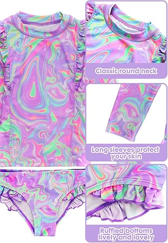 Ultimate Sun Protection:Girl swimsuit with UPF 50+ fabric blocks 98% harmful UV rays - Full-coverage long sleeves shield delicate skin during swimming,beach play, pool parties, surfing,water parks or outdoor water sports