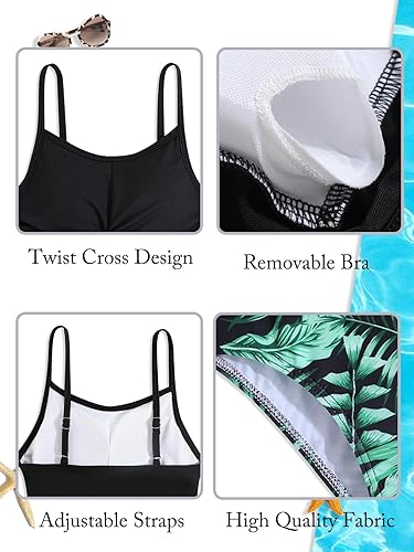 Girls Swimsuit: Features unique and styilsh tropical print, adjustable straps, removable breast pads, high waisted bikini bottom, provide safe and moderate coverage.