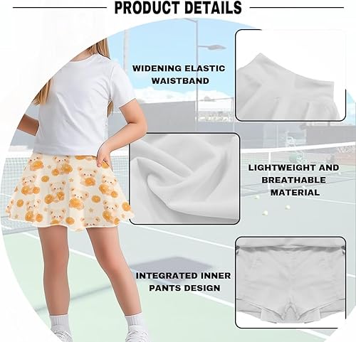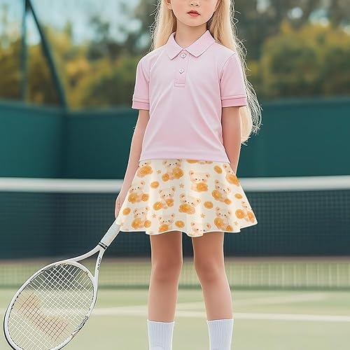 Girls Tennis Skirt with Pockets Shorts High Waist Comfort Athletic Skort for Golf Running School Daily Wear 5-14Y(Bear,11-12 Years)