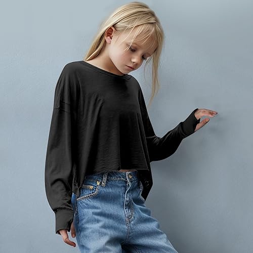 [Features]: Girls fall fashion t-shirts basic crew neck and long sleeves, these tops provide a versatile and timeless look.Available in solid colors,striped print ,cute graphic print,a simple yet stylish aesthetic ideal for casual wear,cute basic tees, trendy shirts outfits for 3-14 years girls,the loose fit tops provide a comfortable fit for ease of wear and movement
