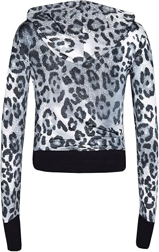 Girls Tops Kids Brooklyn 76 Leopard Print Hooded Crop Top Legging Loungewear Set(Snow Leopard,11-12 Years)