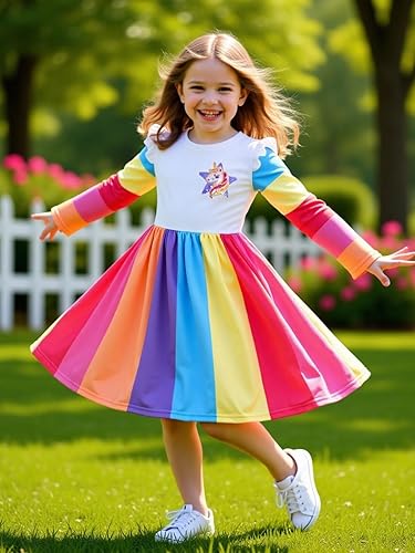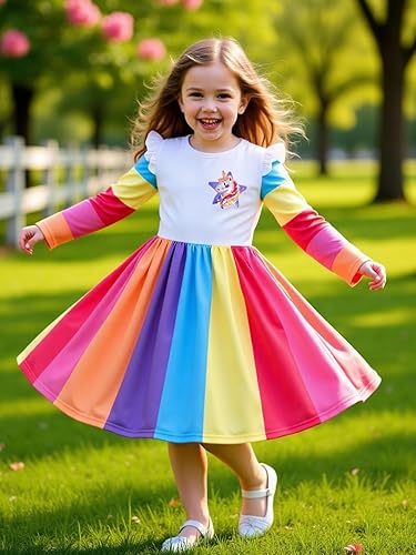 Perfect for Any Occasion: Whether it's a party, family gathering, or a day out, this rainbow striped long sleeve dress is versatile and perfect for any occasion.