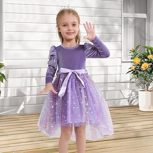 Comfortable Material: The girl's long sleeve tulle tutu dress features a velvet top, soft comfortable and warm. The sparkling tutu skirt is made of mesh tulle with snowflake sequins, dazzling and eye-catching. The girls' casual dress is lined to ensure it doesn't irritate the skin.