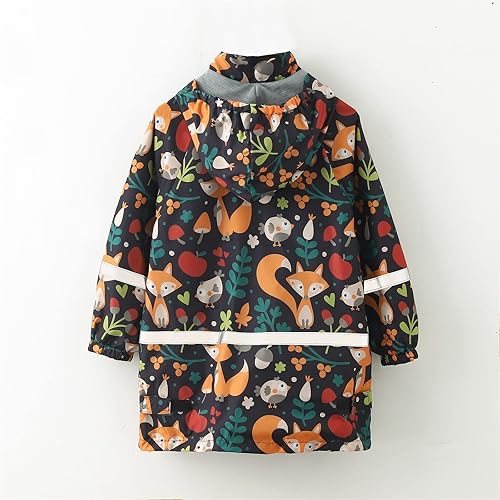 Girls Water-Proof Hooded Raincoat Cartoon Print Rain Jacket Windproof Lightweight Outwear (Orange, 10-11 Years)