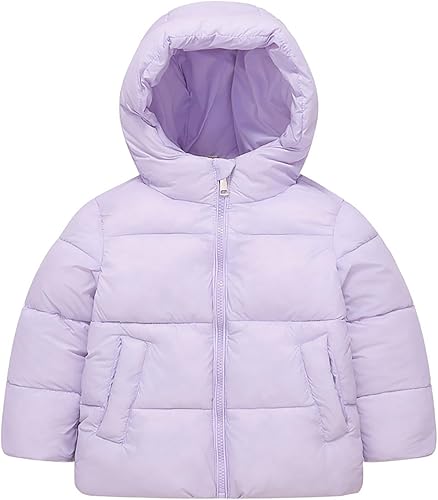 Girls Winter Parka Puffer Coat Lightweight Warm Jacket with Hood and Pocket Kids Down Outdoor (Purple, 5-6 Years)