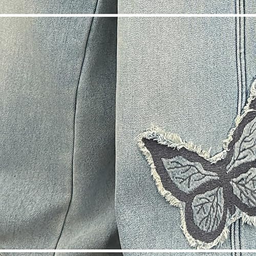 Girls Y2k Baggy Jeans Butterfly Wide Leg Straight Streetwear High Elastic Waist Denim Pants Distressed Washed Trousers(Blue,15-16 Years)