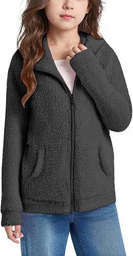 Fur description: Girls Zip Up Fleece Hoodie Jacket