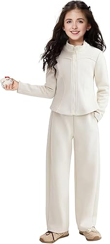 COMFORT FIT: Girls loungewear tracksuit set featuring a zip-up hooded jacket and coordinating flared pants for ultimate relaxation