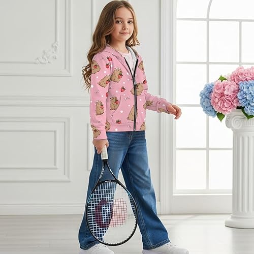 Features:Unisex boys girls long sleeves hooded Sweatshirt with front zipper closure; Pullover sweatshirt, round collar, regular fit, loose, sporty. Front kangaroo pocket can hold small things and warm your hands in cold days; Front full zip makes the sweatshirt easy to pull on and off, and you can also wear it as a cardigan,The hood can warm your head in cold days; Long sleeve is suitable for fall and winter